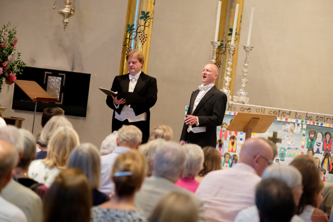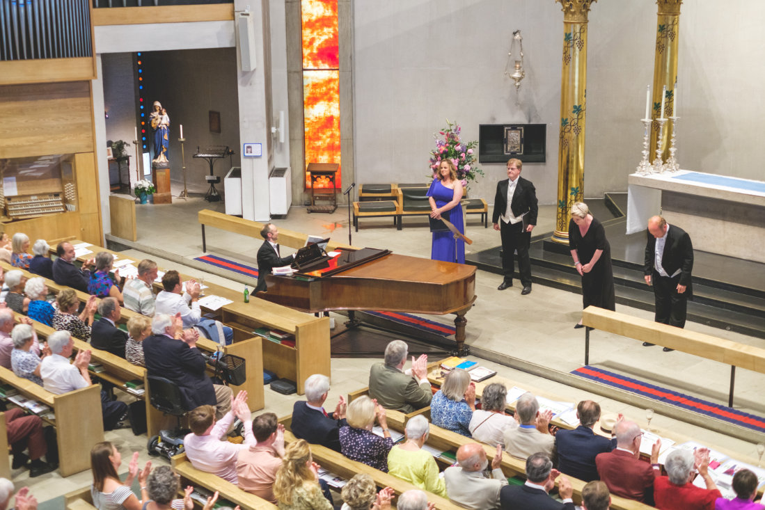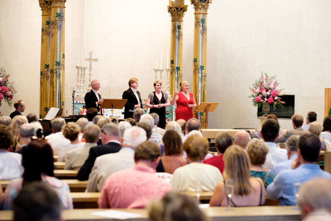 Each summer we are privileged to have four members from The Welsh National Opera give a performance of favourite opera arias in the beautiful iconic setting of All Saints church Clifton. This year we welcomed two new singers Megan Llewellyn who stepped in at the last moment due to regular soprano Naomi Harvey being indisposed. We also welcomed for the first time Jeff Stewart whose amusing anecdotes kept the audience laughing throughout the evening. Under the direction of Simon Phillippo the quartet was completed with Joanne Thomas and James Gower who always give sparkling performances. The eclectic programme included works by Verdi, Strauss and, of course Lloyd Webber. “Mrs Beamish” by Stillgoe and Skellern, dramatically delivered by Jeff, amusingly and very succinctly epitomised the foibles of some stereo-typical members of church congregations much to the amusement of several clergy in the audience !