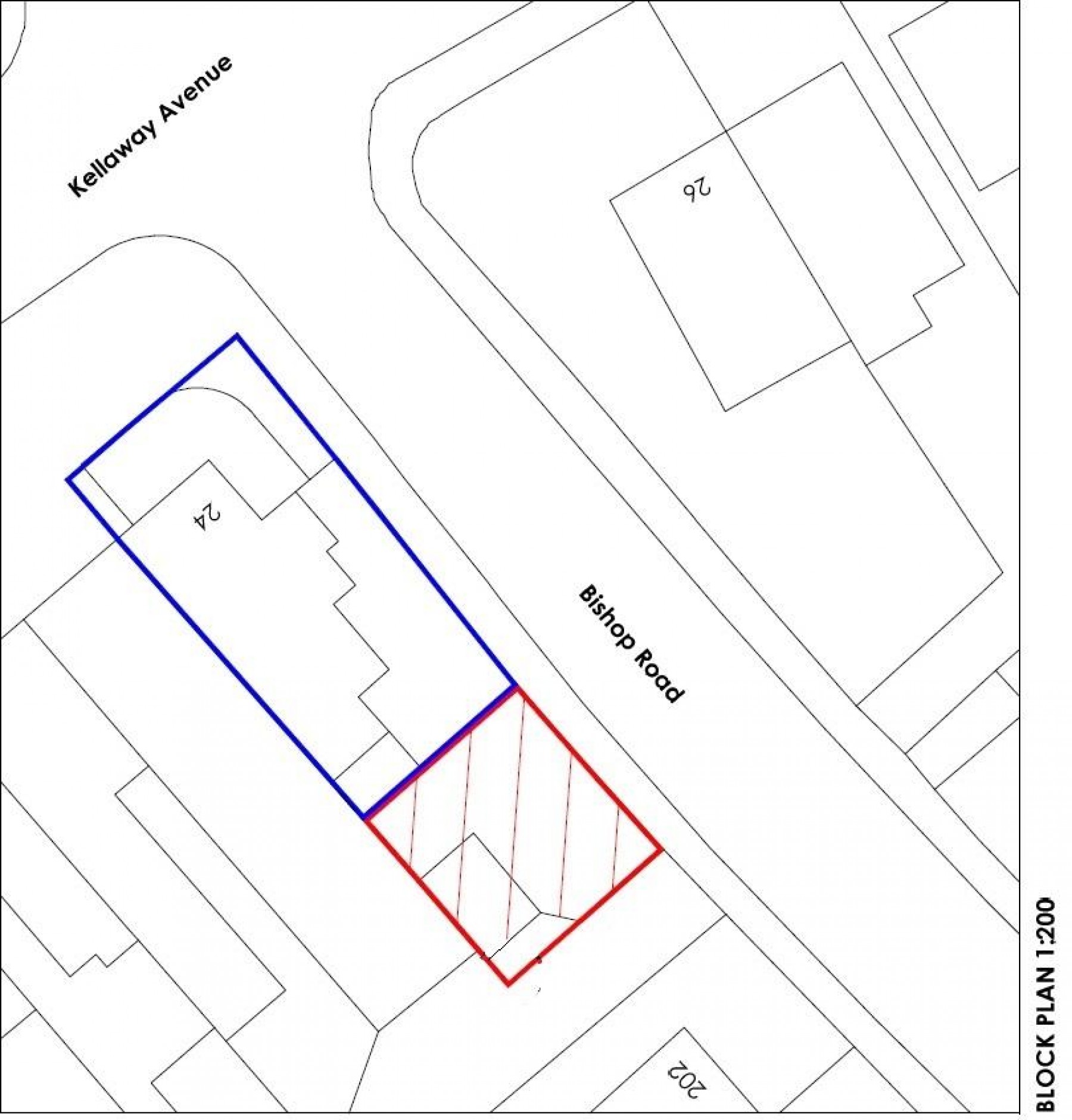 A parcel of land and garages to the rear of 24 Kellaway Avenue fronting Bishop Road.
