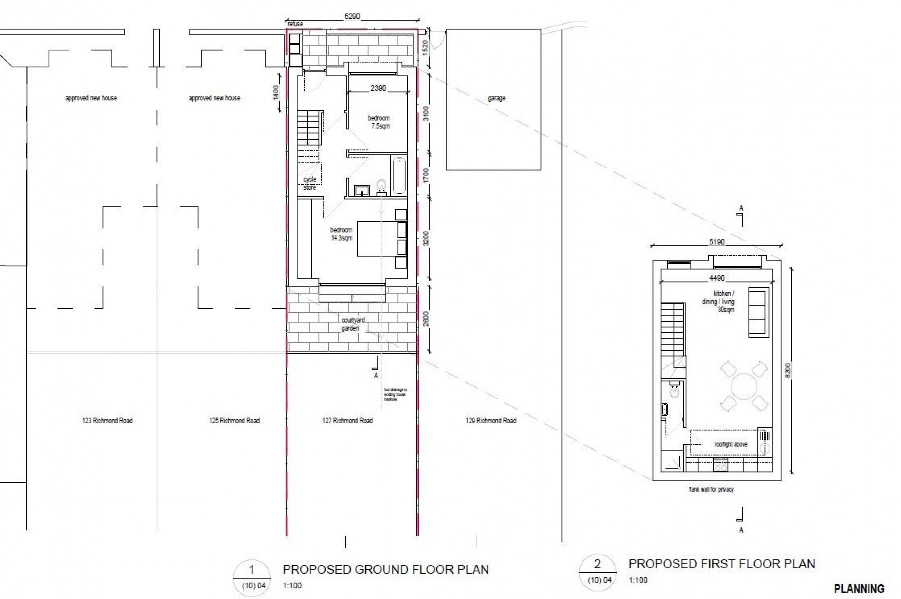 Planning has been granted to demolish the existing garage and create a stylish two bedroom townhouse with courtyard garden.