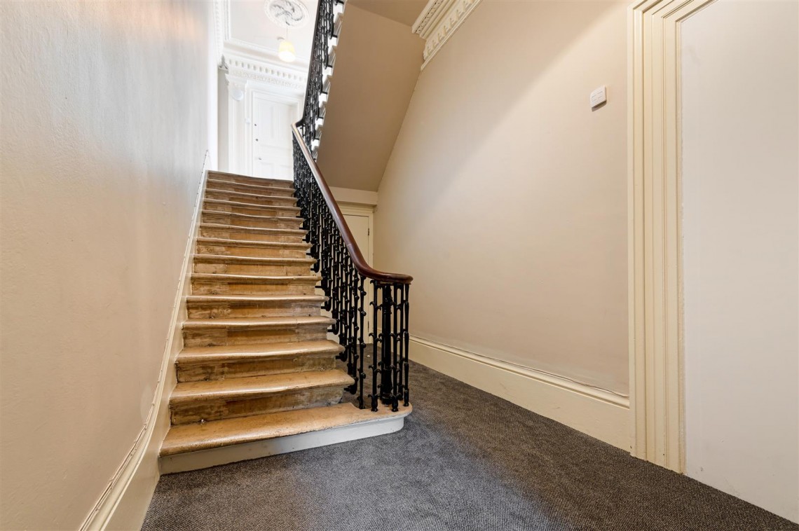 A generous and bright reception room is sat at the front of the building looking out toward the college and features two period sash windows and gas fire with impressive mantle and surround.