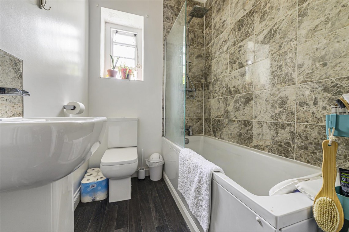 The property briefly comprises of a spacious living area to the front of the building which has a large original sash window which allows plenty of natural light. The kitchen is neatly positioned just off the living area and comes with white gloss wall and base units, marble style work tops, electric oven, gas hob and grey tiling throughout. The bedroom is situated at the back of the property and also enjoys plenty of natural light with the large bay window. It is a comfortable double with space for bedroom furniture and has a built in cupboard space. The hallway has a large built in storage cupboard and space for washing machine tucked away in a smart recess. Finally, the bathroom is fully equipped with a three piece suite with mains shower over bath, w/c and mixer tap hand basin.