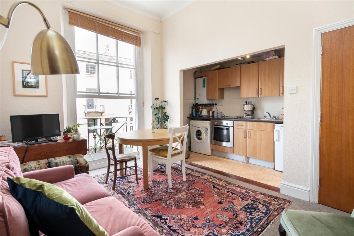 The property briefly comprises of a high ceiling living room with beautiful period sash window opening onto a good size balcony to the front of the building allowing plenty of natural light.