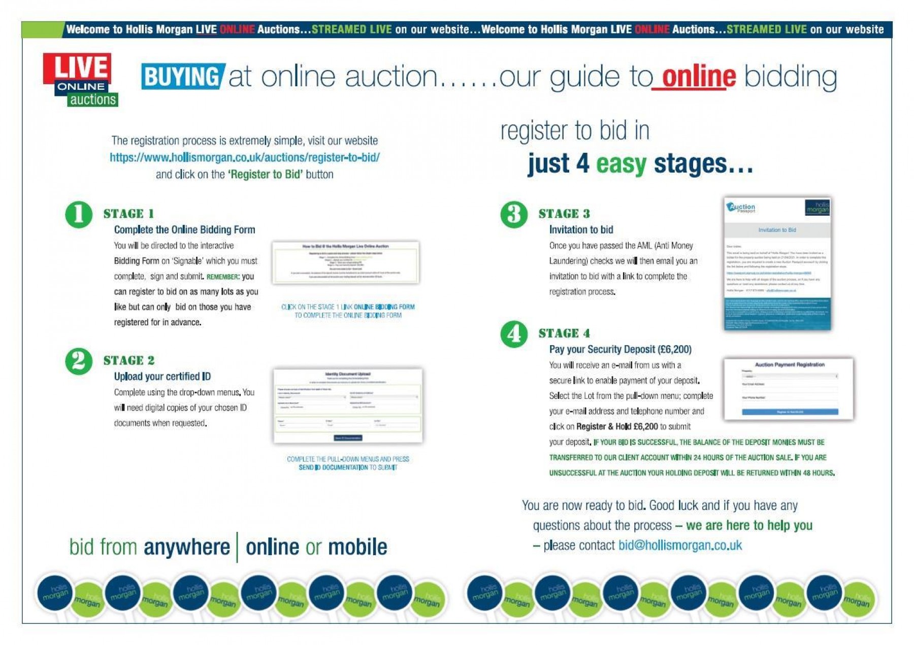 The Auction will be streamed LIVE ONLINE via the Hollis Morgan website & you can chose to bid by telephone, proxy or via your computer.
