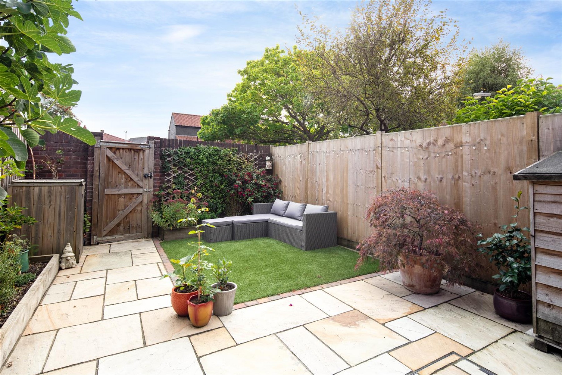 To the outside a charming courtyard style garden is accessed via the kitchen complete with flower border surround, patio area and rear access. A private single garage is also included with the property.
