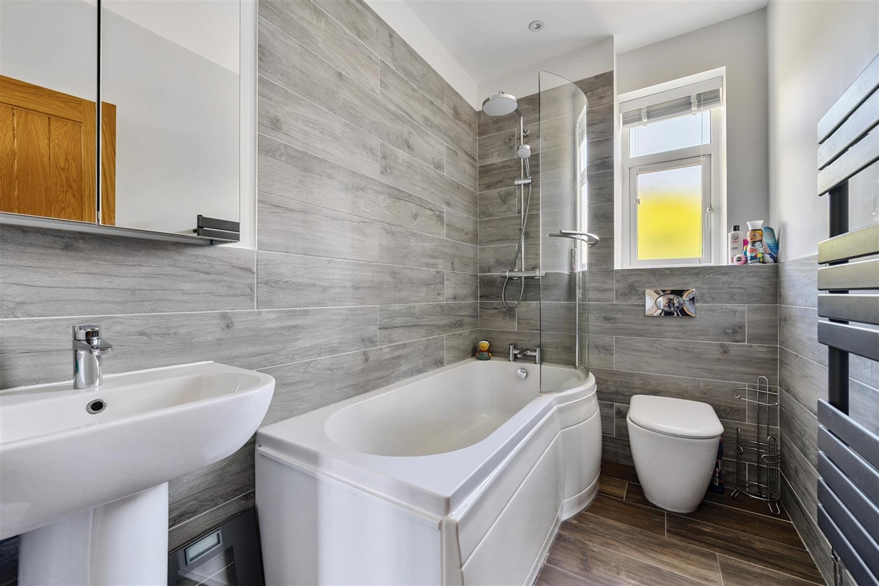 Ascending to the first floor, the accommodation comprises four well-proportioned bedrooms. The principal bedroom is notably spacious, featuring a stylish en-suite bathroom. Furthermore, a beautifully tiled, three-piece family bathroom serves the remaining bedrooms.
