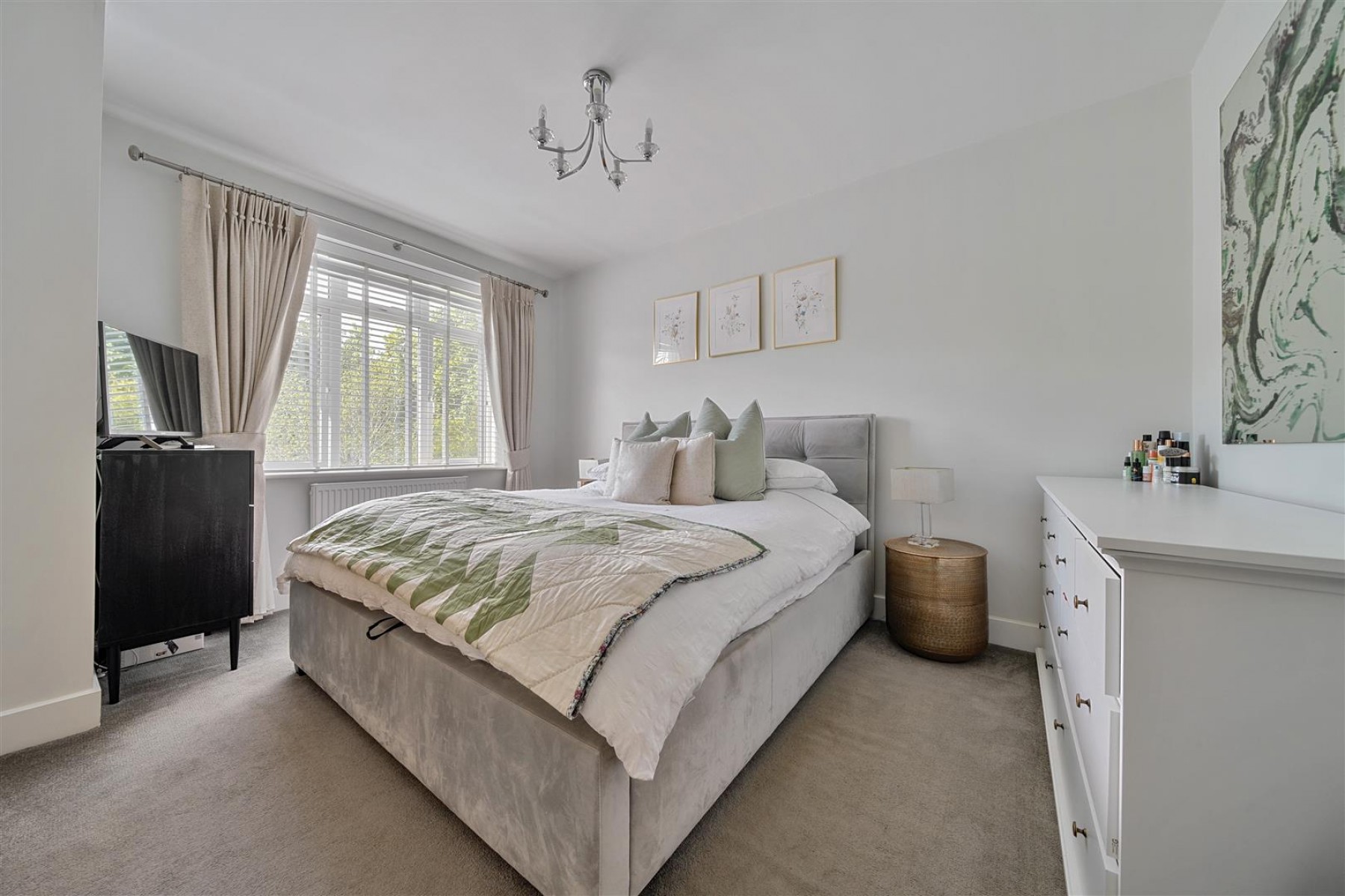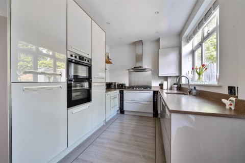 Outside, the sunny south-facing rear garden has been beautifully landscaped with composite decking, a raised patio area for alfresco dining, and a lawned area with flower beds. Side access leads to the front driveway, which offers parking for two cars and includes an EV charger point.