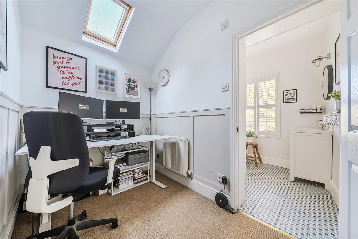 Upon entrance to the property, you are greeted with timeless wooden floorboards which continue throughout the home. This entices you into the front reception room, radiant and filled with natural light accentuating the quintessential Victorian features, all with the bonus of a log burner bringing a sense of cosiness and warmth to the room. Continuing on there is a spacious open dining room, ideal for family dinners or hosting which seamlessly leads through to the kitchen. Equipped with fitted appliances and a calming colour scheme, this space is tranquil and practical. The ground floor benefits further from Separate W.C and storage area.